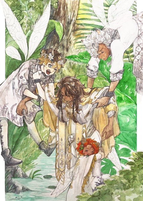 #ツイステファンアート 妖精たちが春を届ける準備を始めたようです。 まずはお寝坊さんを起こすところから🧚♂