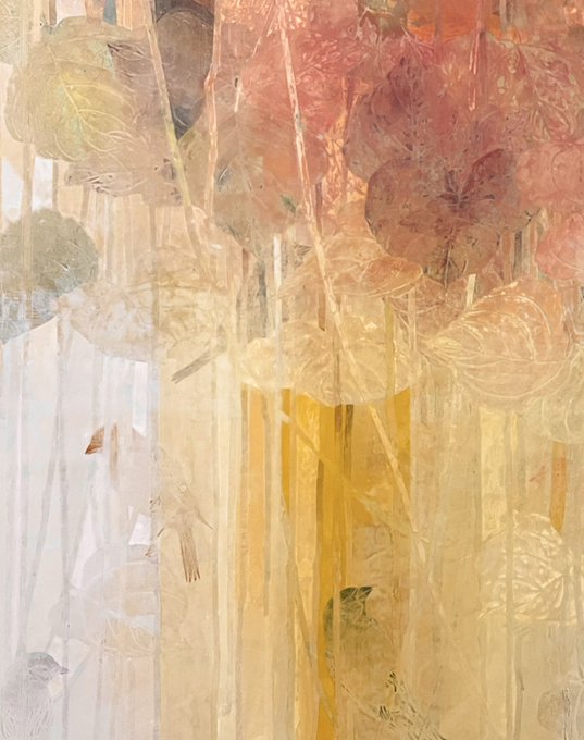 ◯展示のお知らせ◯ 第77回春の院展 3/23〜4/4 日本橋三越本店 本館7階催物会場 この度春の院展にて奨励賞を頂きました 葛の垂れた茎を帳(カーテン)に見立て、その空間に潜む雀たちを描きました 色々ハプニングもありましたがなんとかなってよかった… ご無理のない範囲で宜しくお願い致します