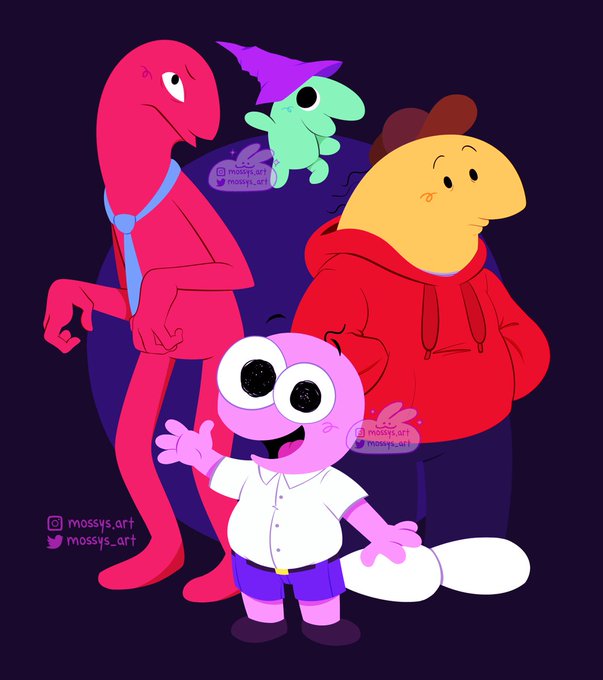 Hello #PortfolioDay! ✨ Here are some recent lineless pieces, I love bringing fun characters to life in my art! twitter.com/mossys_art/sta…