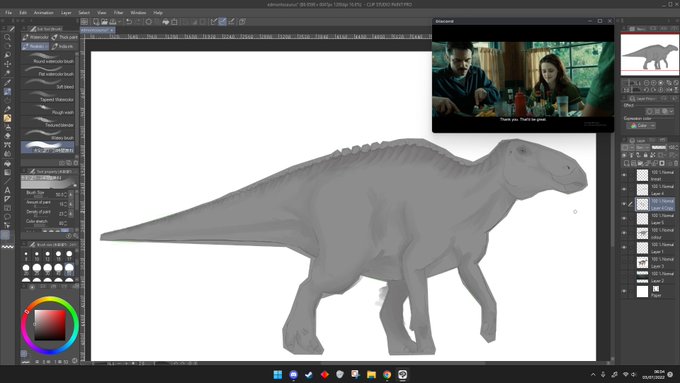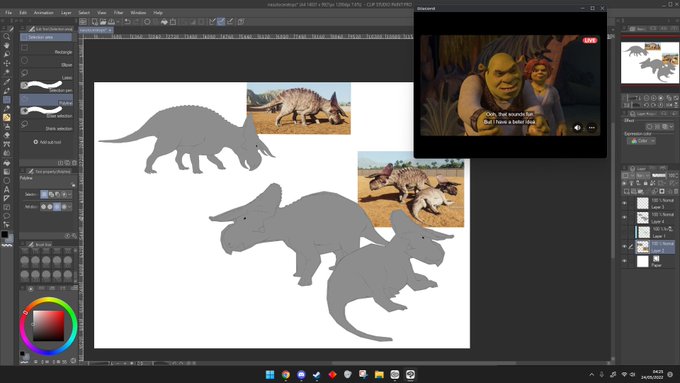 its half 4 n me n my friends are watching Shrek 3 as i finish the line work for my nasuticeratops . #nasutoceratops #paleoart #paleontology #dinosaur #PrehistoricPlanet #prehistorickingdom