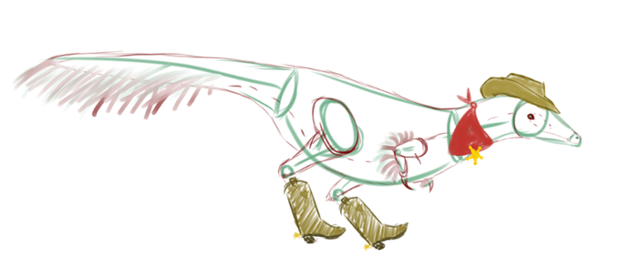 ive been v depressed today so i made my mononykus sketch a cowboy n now i wanna make the finished piece have a cowboy layer (n give the boots proper physics) . #mononykus #paleoart #paleontology #dinosaur #PrehistoricPlanet