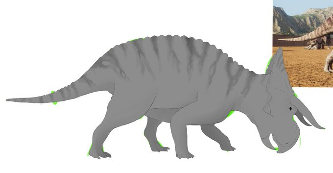 A more UpToDate version of @Nigelmarven's Prehistoric Park Triceratops with the blue mating crest from 2006 . #triceratops #paleoart #dinosaur