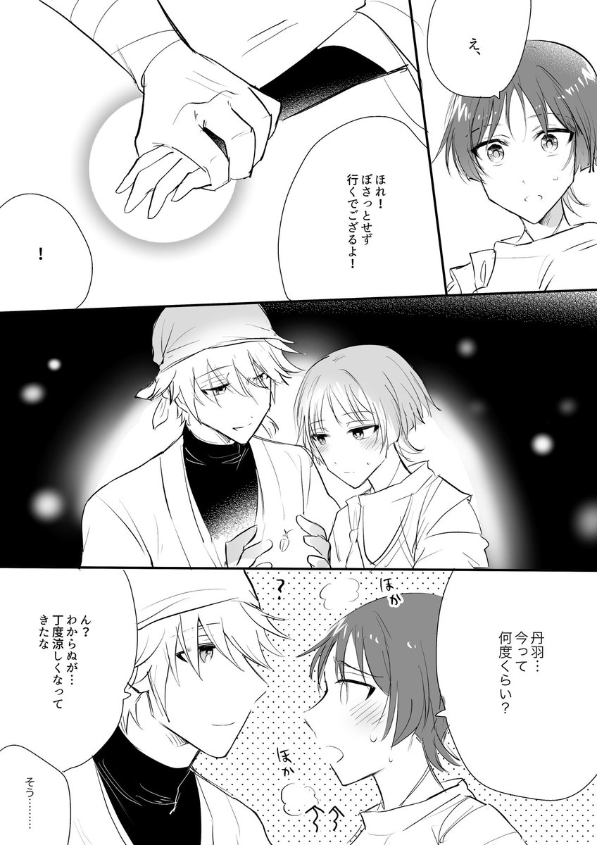 3 11 #丹傾ワンドロワンライ 大遅刻すみません!!お題「あつい」をお借りしましたが前回お題との合作みたいになりました…(1h+2h) ※傾→丹っぽいです 23/07/13 01:30