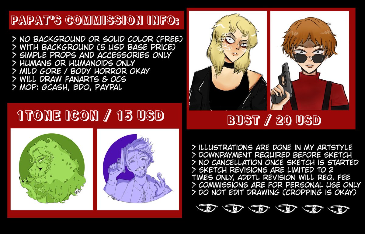 [ART COMMISSIONS: OPEN] Hi, hi! Here's my updated commission info, frends. 👁️👁️👁️ Come get your art! RTs are appreciated! ✨ Order form is in the reply. 🥰 #artph #artistsontwitter #commissionsopen #artcommissions