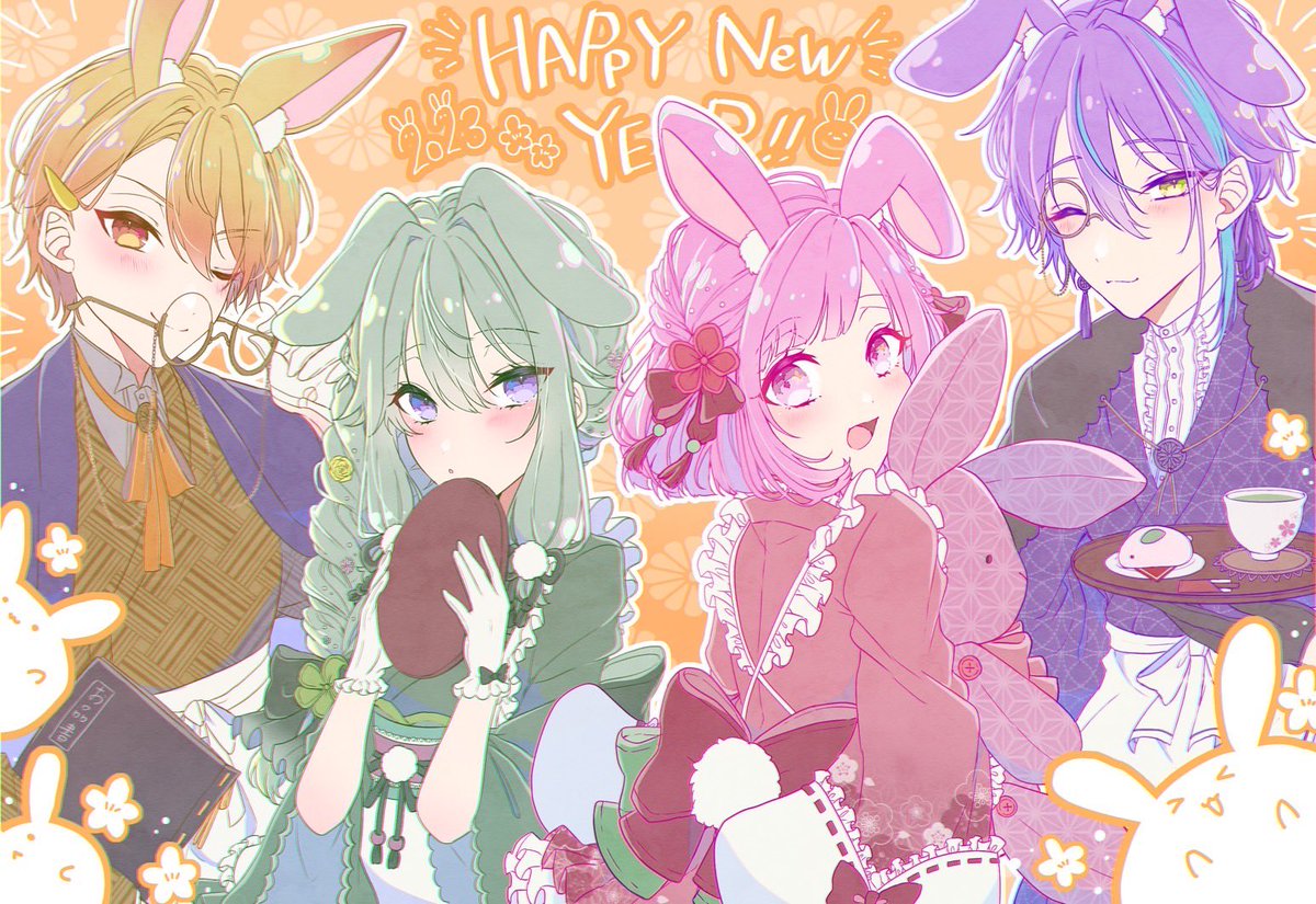 15 70 和風カフェな🐰🎪で描き初めです!! 今年もどうぞよろしくお願いします🙇♀️🌸 23/01/04 23:34