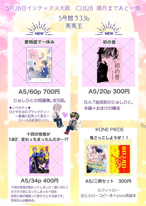 5/28インテ新刊 じゅしひと 【愛物語で一休み】 全5話のじゅしひと短編集です。 1話サンプル分のみ↓ 長いサンプルは支部で→ pixiv.net/artworks/10821… ★A5/60p/全年齢 700円★ よろしくお願い致します❗️