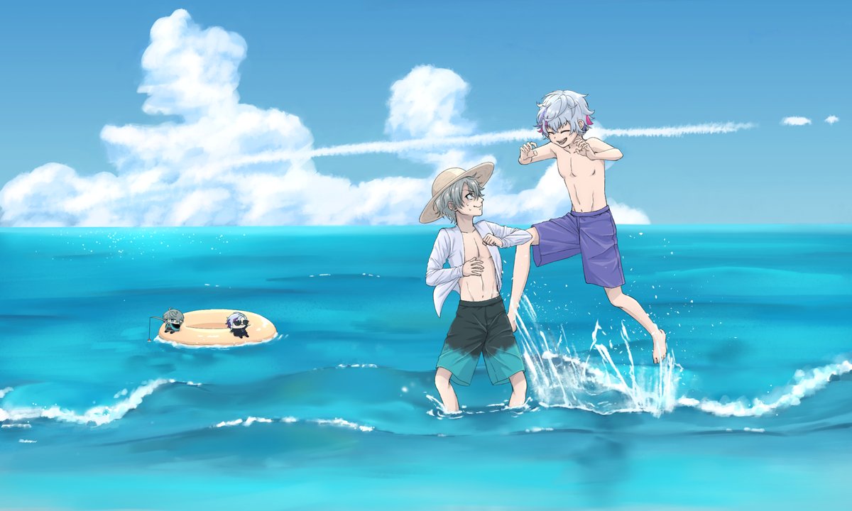 夏だ‼️☀️🌻🏝️バカンスだ‼️🌴🌺🌊✨ #ろふあーと #加画美 #金剛力也像 #絵スコート #描いた晴