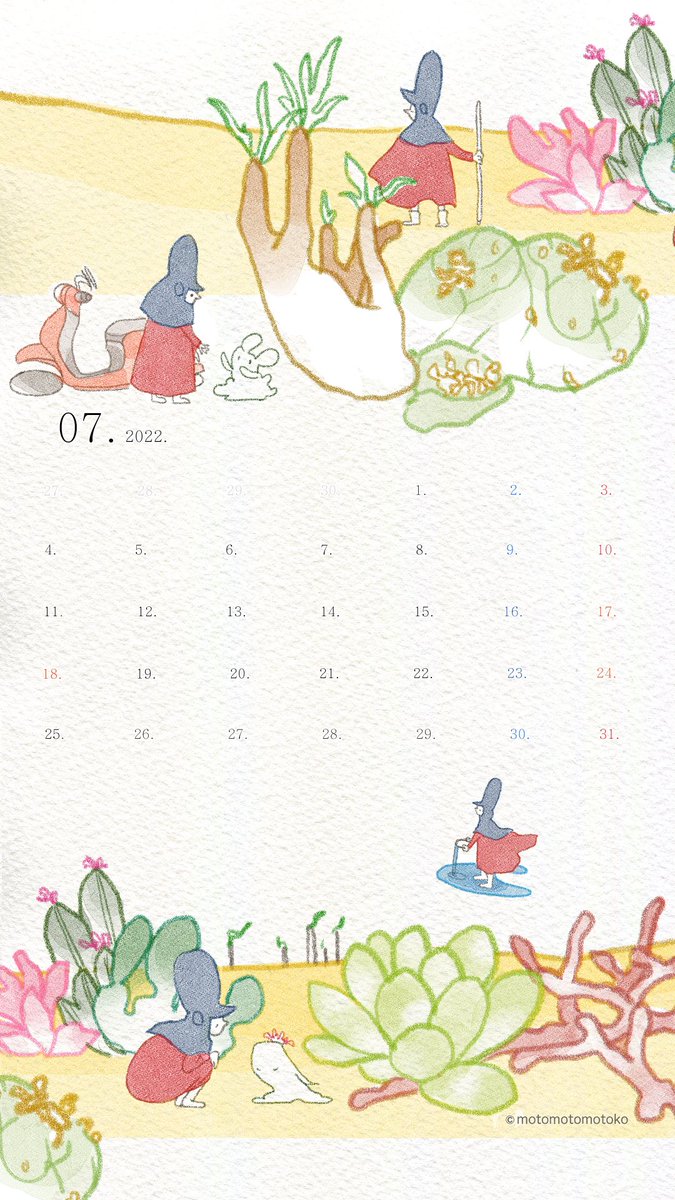 0 10 7月もよろしくお願い致します🙏暑い… #イラスト #カレンダー #スマホ壁紙 22/07/01 09:45