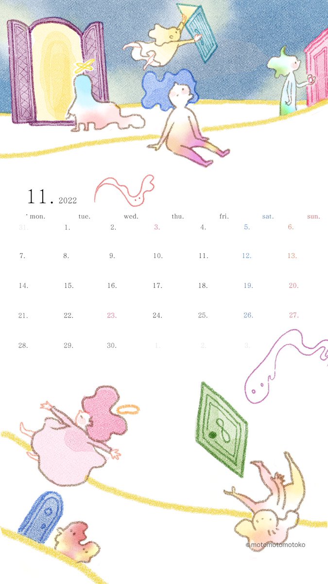 11月の壁紙です。1日を満喫しすぎて忘れてしまいました。たくさんの扉が開かれそうな気配を感じる11月。今月もよろしくお願いいたします🙏 #スマホ壁紙 #カレンダー #2022年11月 #イラスト