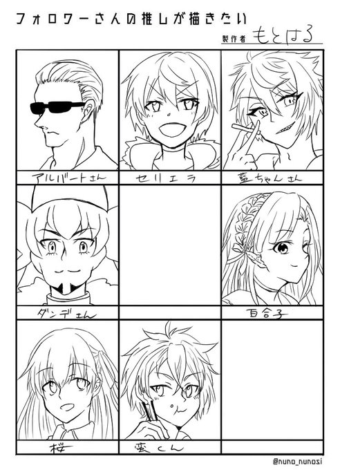色塗ってたらいつになるかわからないから線画であげちゃう。リプくださった方々、ありがとうございました!後半はフォロワーさんの推しだと思う人たちを描きました。あとで色塗ります! #フォロワーさんの推しが描きたい