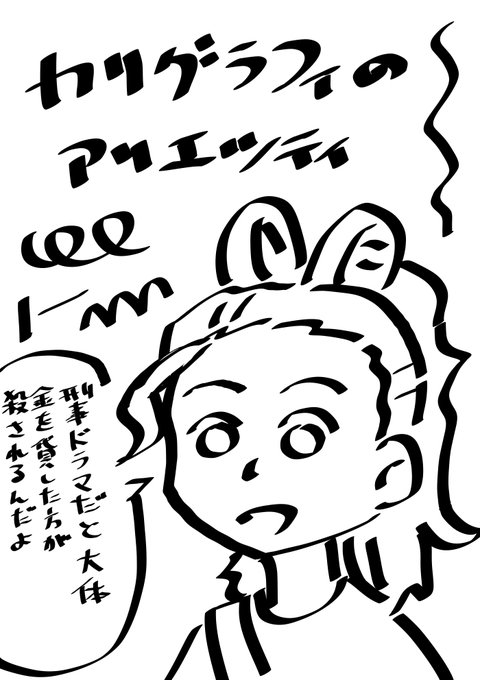 クリスタに元からついてるカリグラフィペンほど縦と横の線の幅の差がないけどちょっとだけあるペンが欲しい。効果音描くときに使えそう。 ペンの作り方調べた方が早いのか? 画像はカリグラフィペンで描いた落書き。