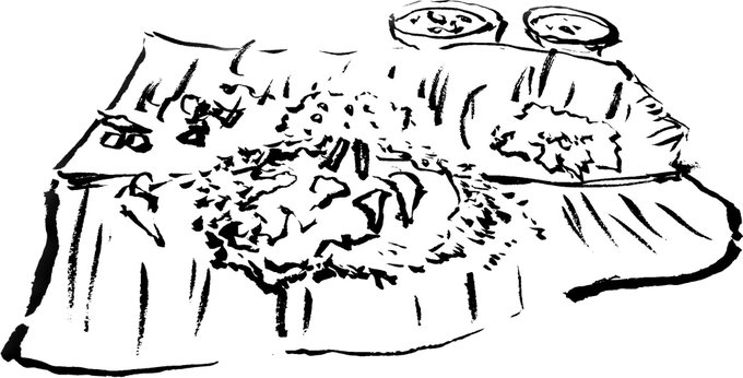 #ペン画 #筆ペン お腹が空く絵 着彩前