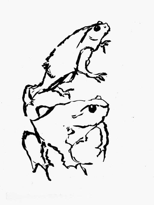 0 1 #ペン画 #筆ペン #アズマヒキガエル 下描き無し 23/05/25 21:44