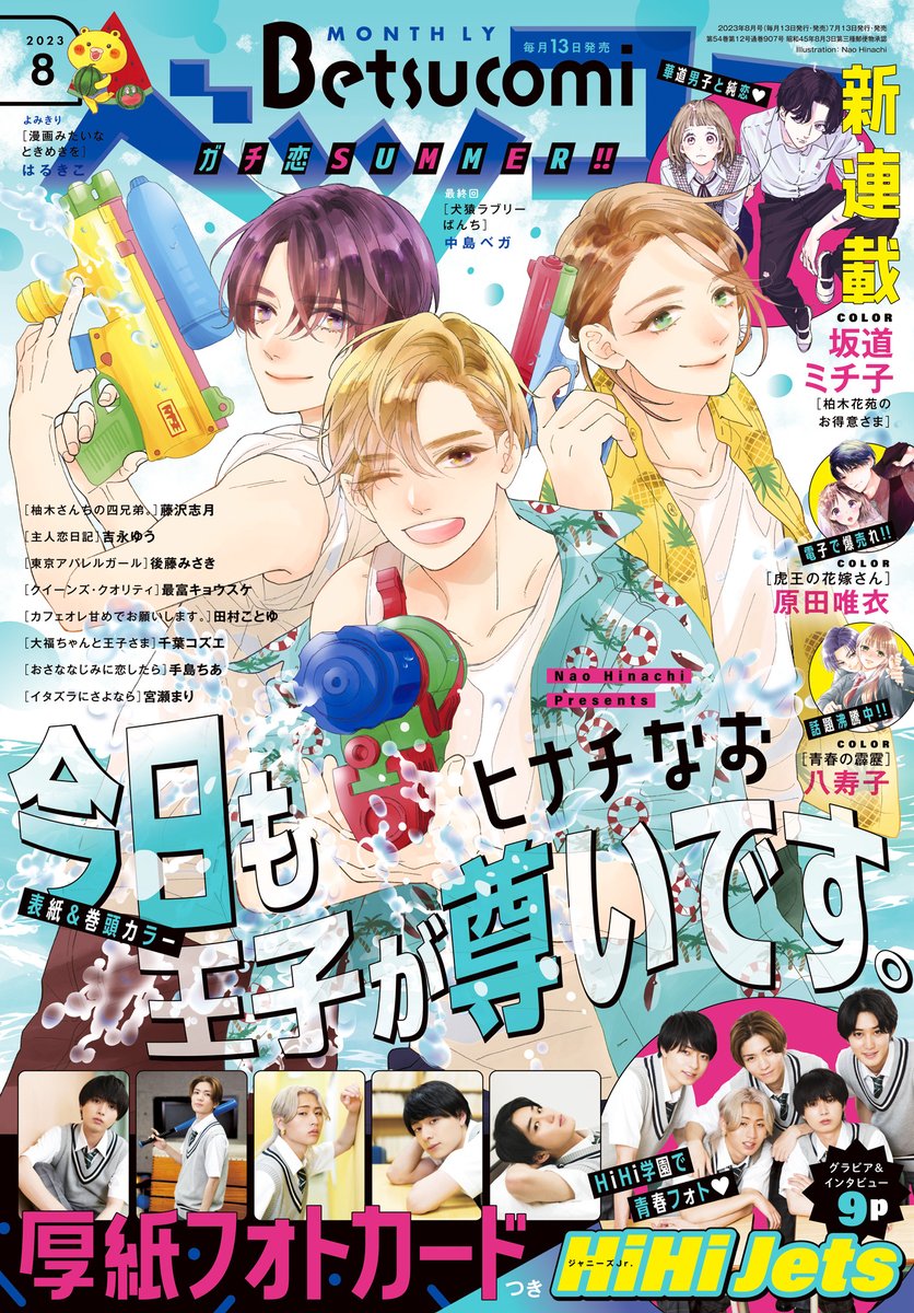 33 234 ベツコミ8月号、本日発売です。 「今日も王子が尊いです」の爽やかイケメン表紙。涼し気でいいですね~! クイーンズ・クオリティ91話も掲載です。過去編真っ最中なのであえて玖太郎の扉絵。とはいえ今月はけっこう玖太郎出てます。タカヤも。 23/07/13 12:09