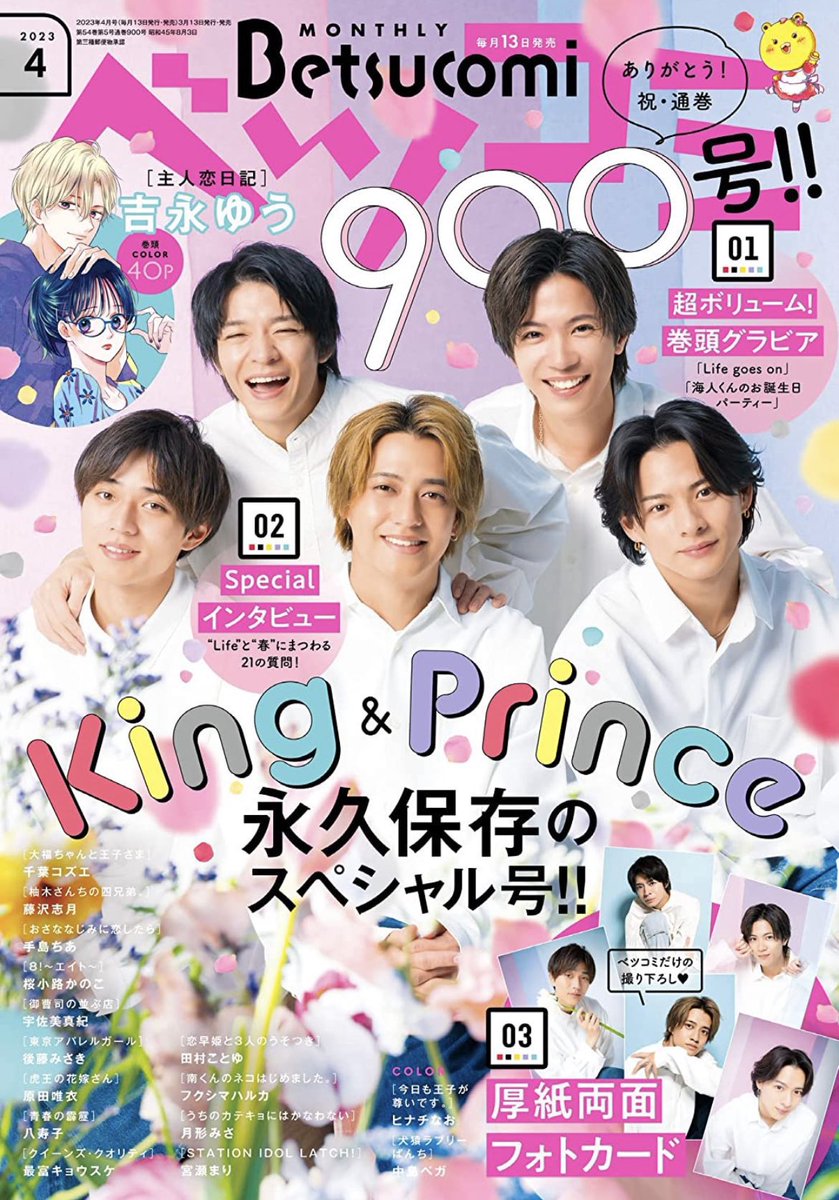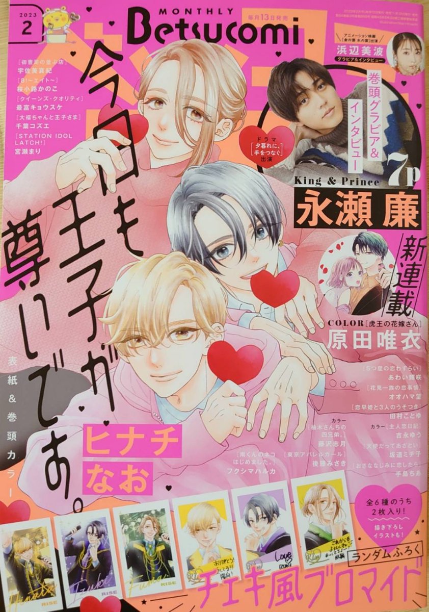 ベツコミ2月号本日発売です。ヒナチ先生「今日も王子が尊いです」の美麗ピンク表紙! クイーンズ・クオリティ85話も掲載です。文とツバサの若干エモめな扉絵が目印。本編では玖太郎とツバサがそこそこ絡んでおります。あと白猫さんがなんか、重大な事を喋っていそうな気配がある。