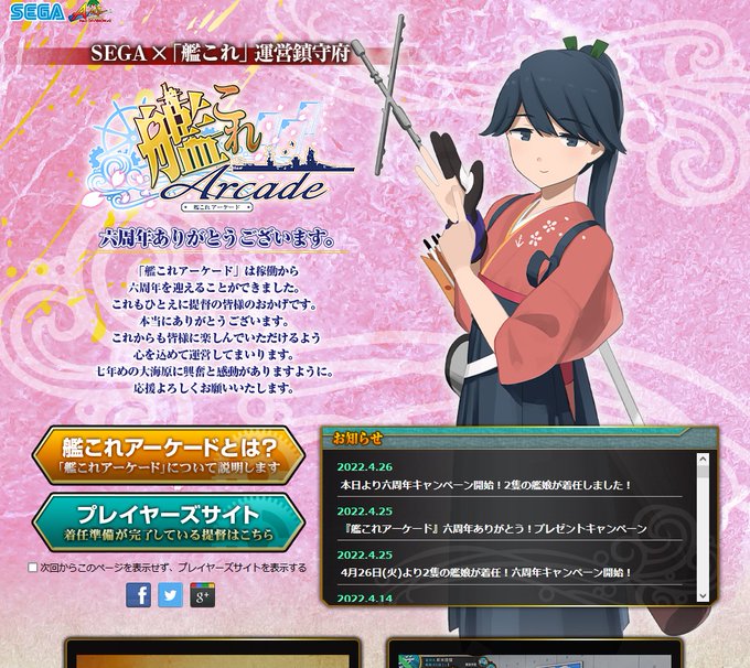 アーケードのサイトに鳳翔さんが! kancolle-a.sega.jp