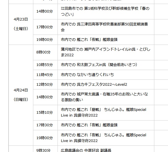 呉市長さんの市長動向の中に「艦娘音頭」の文字がw city.kure.lg.jp/site/sichou/pa…