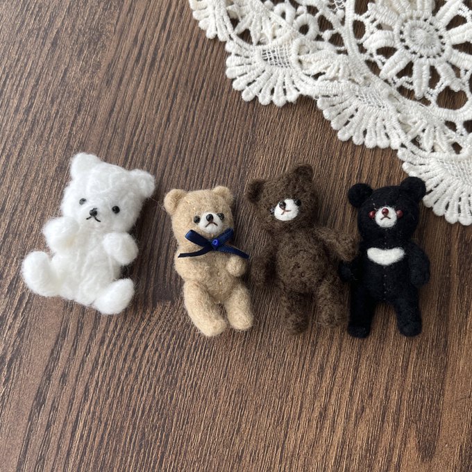 くまちゃんブローチ🧸 白い子は手足動かせます☺️ #ハンドメイド #羊毛フェルト #ブローチ #テディベア