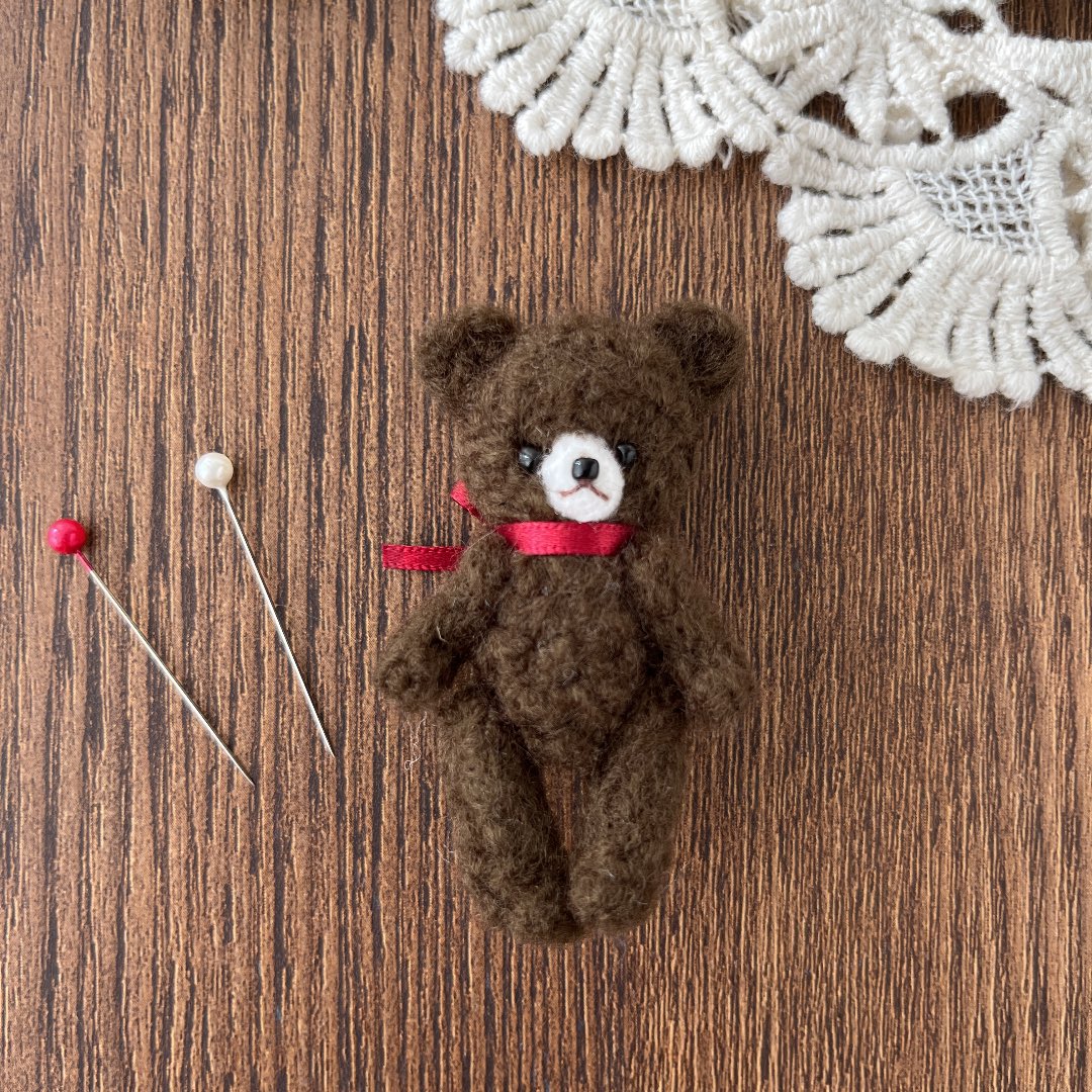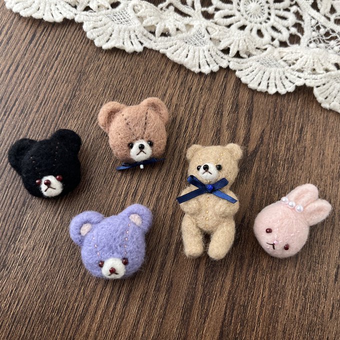 ぬいぐるみ風ブローチを作っています。 全身の子を他にも制作中… #ハンドメイド #羊毛フェルト #ブローチ #テディベア