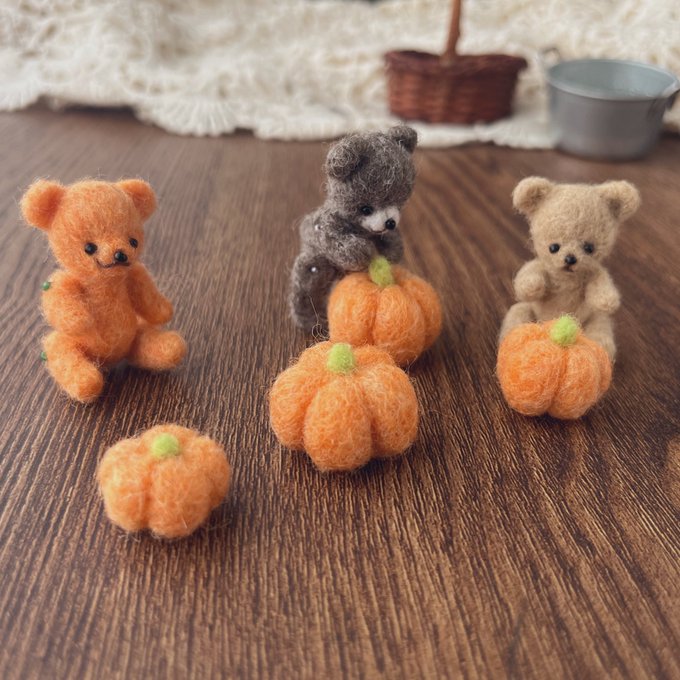 0 4 ハロウィンに向けてカボチャのくまちゃん制作中です😊 #ハンドメイド #羊毛フェルト #ブローチ #テディベア 22/07/31 10:40