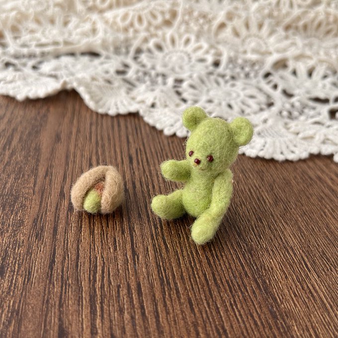 0 6 かわいい子生まれてます🍎🍄🍯 #ハンドメイド #羊毛フェルト #テディベア 22/09/29 11:28