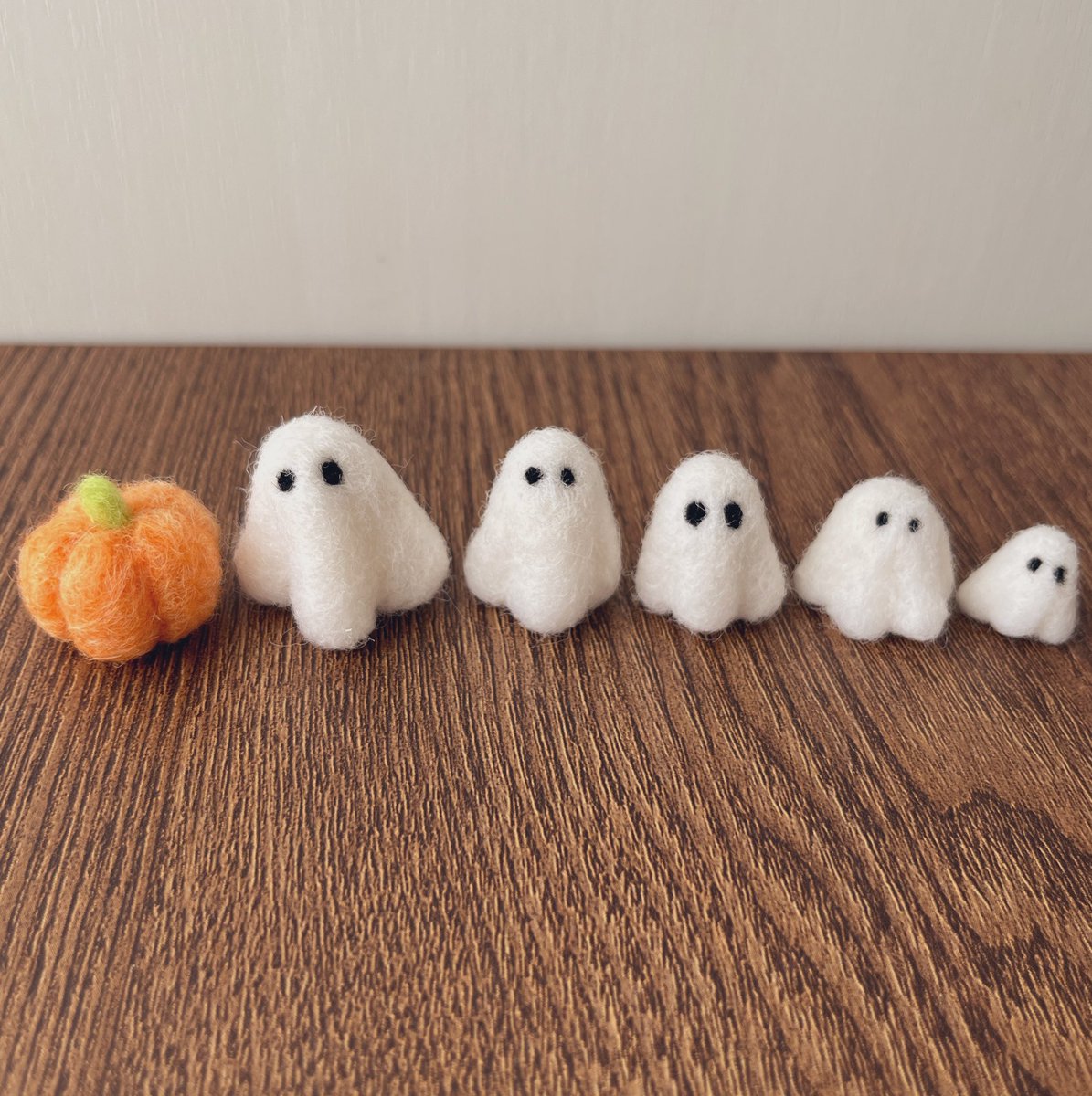 1 12 ちっちゃいおばけのファミリー🎃👻👻👻👻👻 昨日出品してすぐにお迎え先が決まりました! ありがとうございます☺️ おばけちゃんはまた出品できるように製作中です! #ハンドメイド #羊毛フェルト #ミニチュア #ハロウィン 22/09/30 10:06