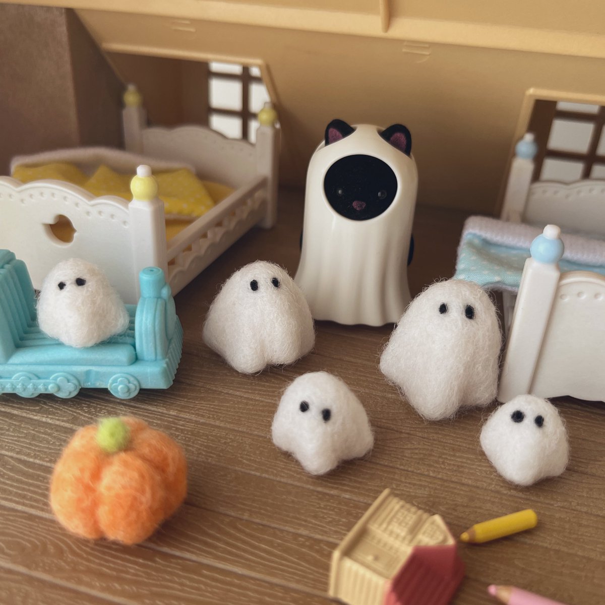 0 8 おばけファミリー出品中です👻👻👻👻👻🎃 ドールハウスなどのハロウィン準備におすすめです😊 #ハンドメイド #羊毛フェルト #ミニチュア 22/10/03 13:56