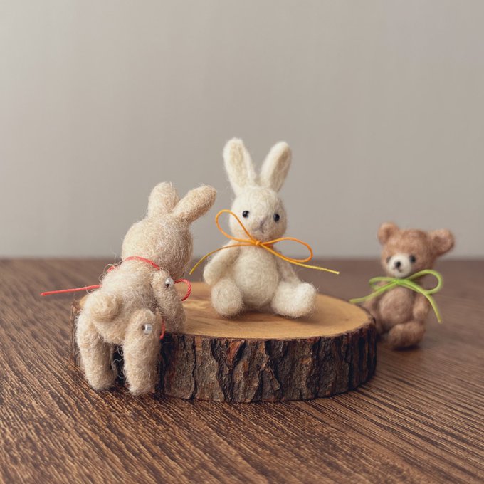 Twitterなかなか更新できてないけど、出品はしています😅 最近はもこもこの子も作ってます🪡 #ハンドメイド #羊毛フェルト #ミニチュア #テディベア