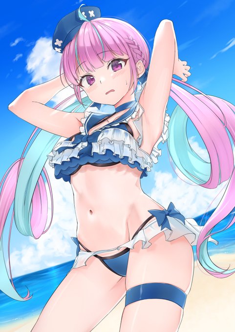 567 2450 夏なので水着あくたん⚓️ ホロライブサマーで水着の次に浴衣の新衣装もきたし、かわいい衣装どんどん増えて嬉しい!!水着衣装もっと増やして!! #あくあーと 22/08/24 18:26