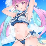 夏なので水着あくたん⚓️ ホロライブサマーで水着の次に浴衣の新衣装もきたし、かわいい衣装どんどん増えて嬉しい!!水着衣装もっと増やして!! #あくあーと