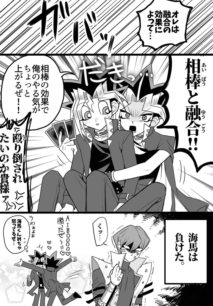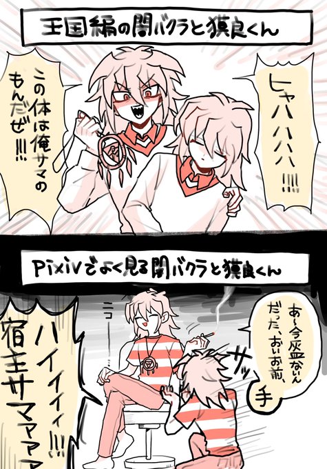 アニメだと闇バクラが圧倒的パワーバランスで支配してるのに支部だと力関係ひっくり返ってんの大好きなんだが (コラ!獏良くんは喫煙なんかしねぇ!!!!)
