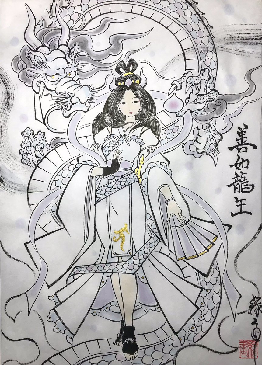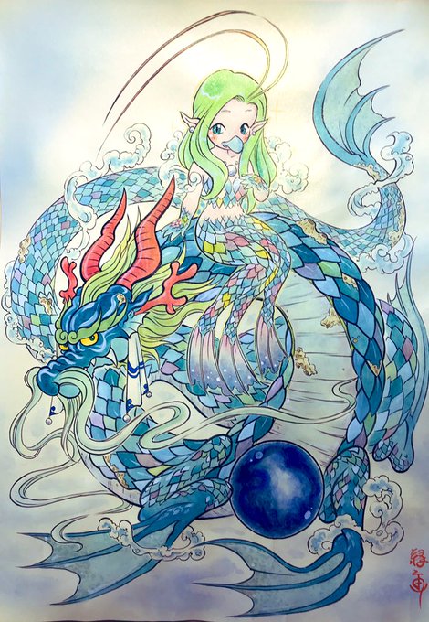 完成しました✨ アマビエ様と大海龍王🐉 世界中から疫病を祓い給へ清め給へ 願いを込めて🙏✨ #みんなのアマビエ #アマビエ #龍神 #拡散希望️
