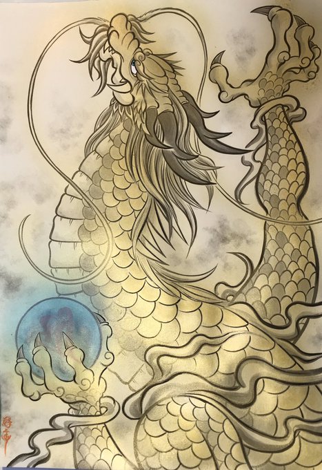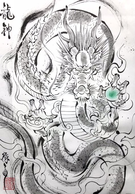 おはようございます😊今日は今年最後の氏神参拝です✨とはいえ年末までにまだ神社に用事はありますが😅今日は善如龍王様を描かせて頂きました🤗旅立つ友人の後押しになればと願いを込めて✨皆様の一日にご加護がありますように🙏✨🍀🐉🔮#善如龍王