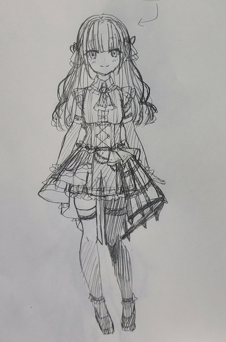 明日も仕事だからアナログで大体のイメージを描いたよ〜 新しい衣装だぁ!