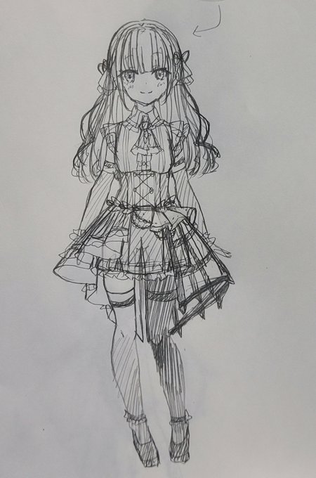 1 10 明日も仕事だからアナログで大体のイメージを描いたよ〜 新しい衣装だぁ! 22/11/10 21:10