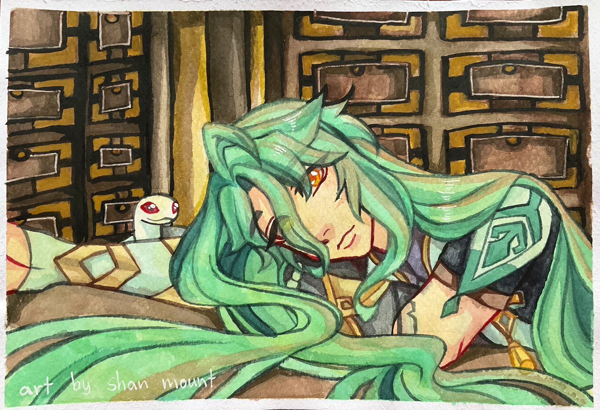 แฟนอาร์ตให้หมอไป๋ค่ะ✨🐍 #原神 #Genshin #Genshin_Impact #genshinimpactfanart #Baizhu #watercolorpainting #watercolor