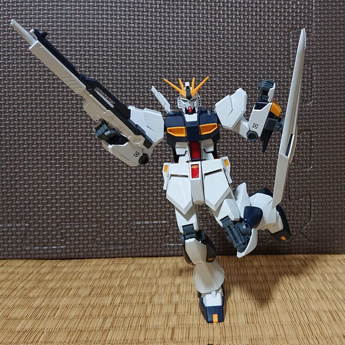 RGHi-νガンダム+ハイパーメガバズーカランチャー完成。めっちゃくちゃカッコいい!そしてハイパーメガバズーカランチャーでか過ぎ!! #ガンプラ好きと繋がりたい #ガンプラの画像を貼るとRTされると聞いて