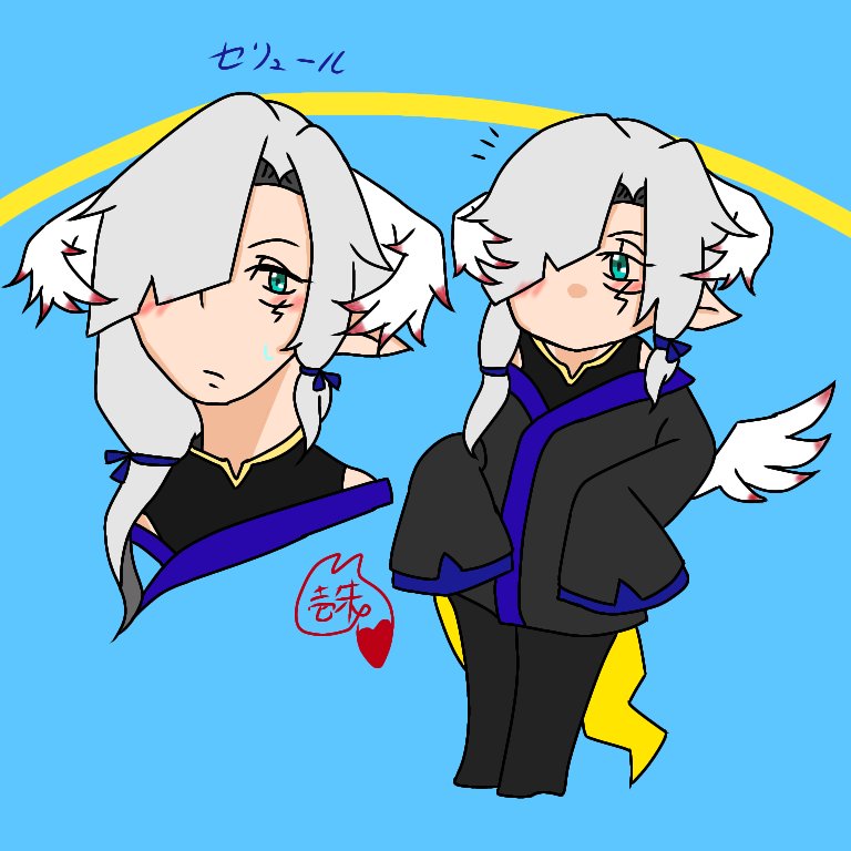 #アイビスイラスト #オリジナルキャラクター #絵描きさんと繫がりたい #線画を晒すと誰かが色を塗ってくれるかもしれない オリっ子のセリュールくん。 全体にと描いたミニセリュールくんちょっと傾いた(笑)