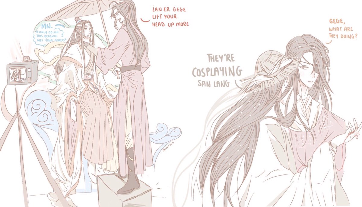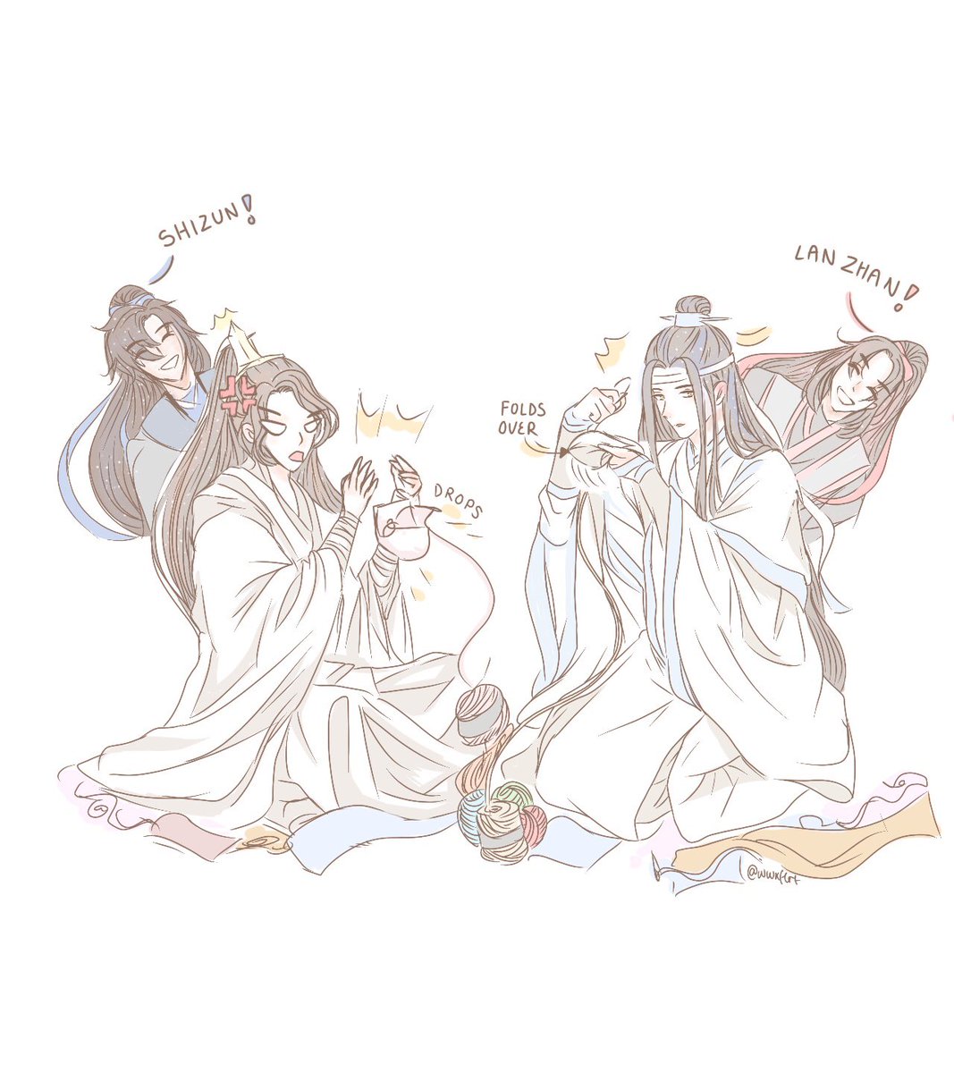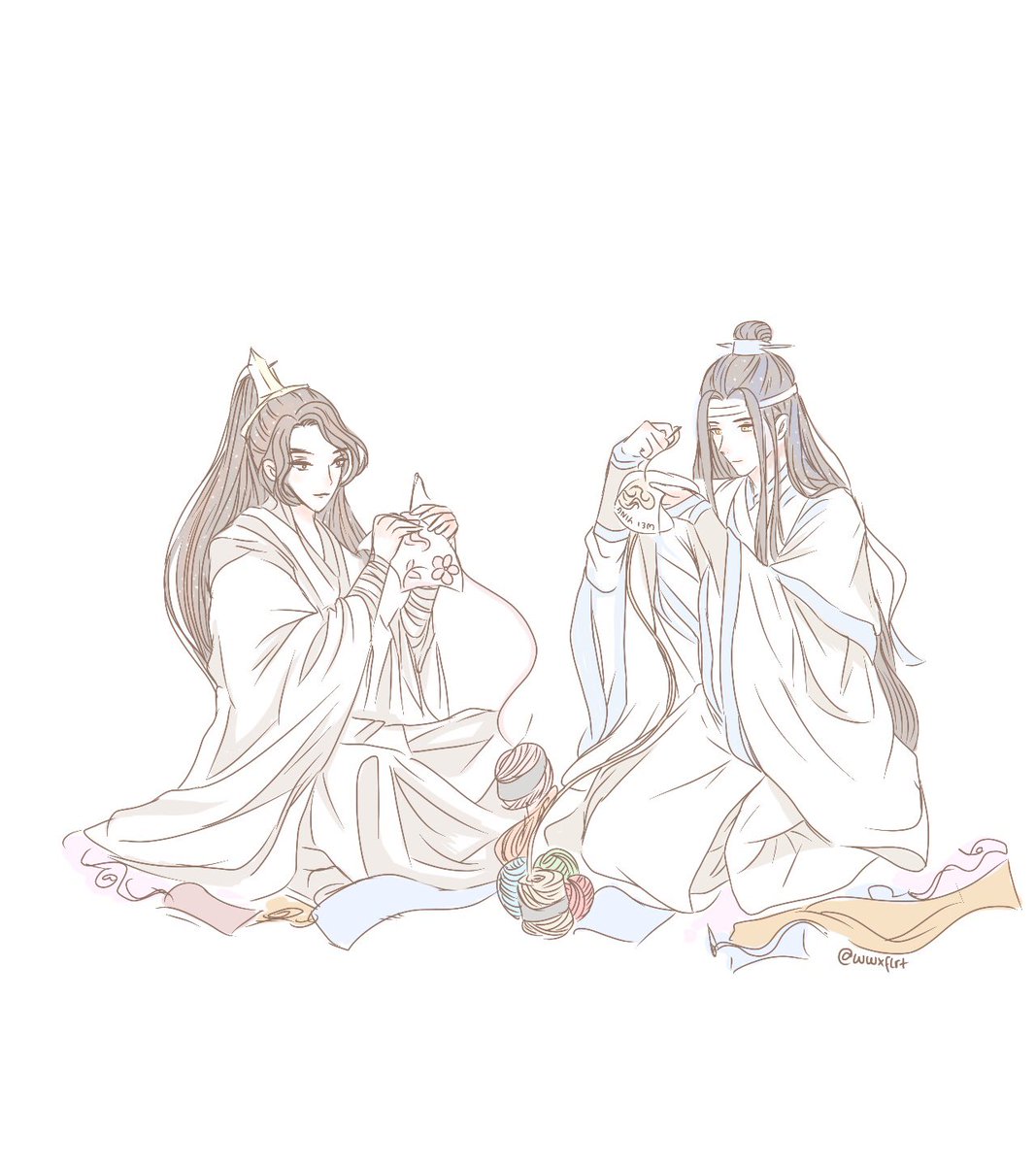 shhhhh they’re knitting handkerchiefs to surprise their husbands #魔道祖師 #mdzs #마도조사 #wangxian #忘羡 #2ha #二哈和他的白猫师尊