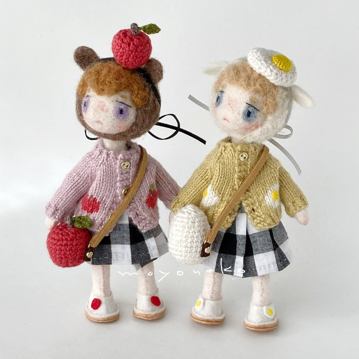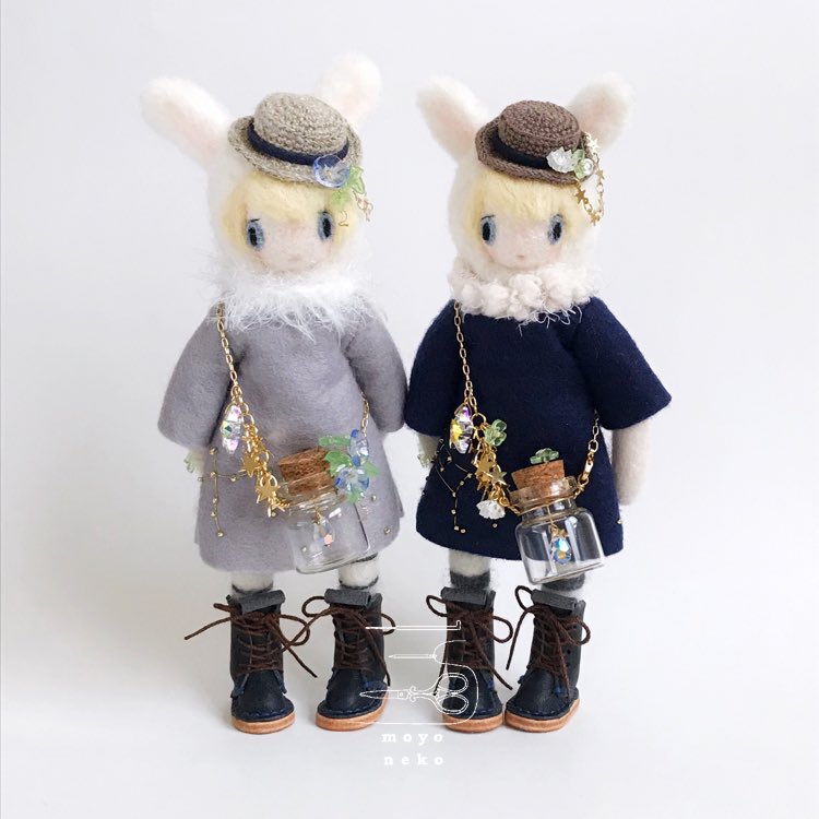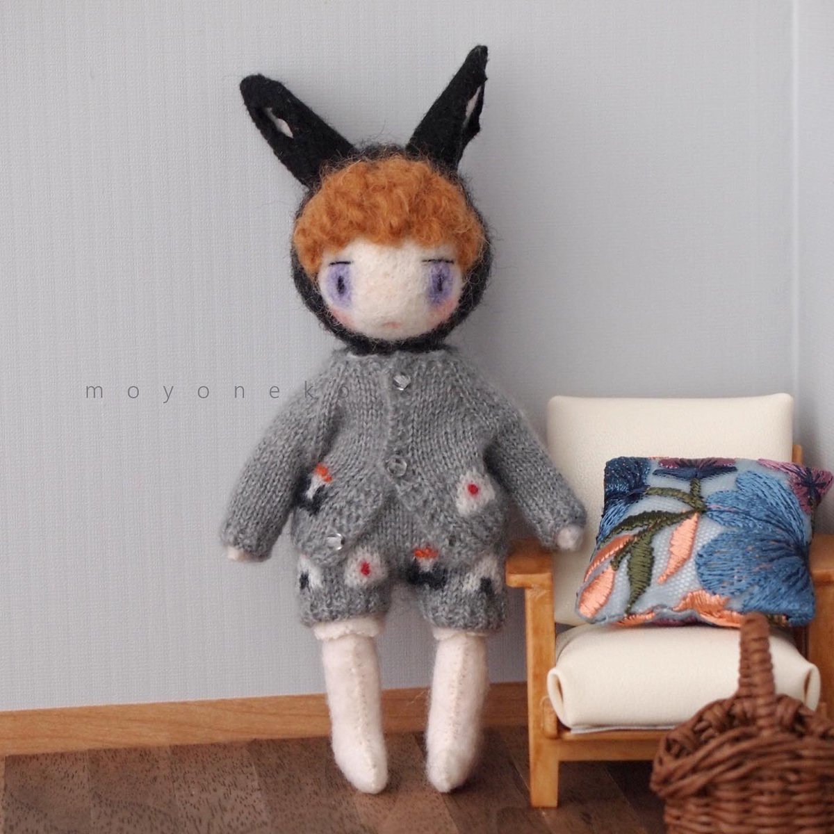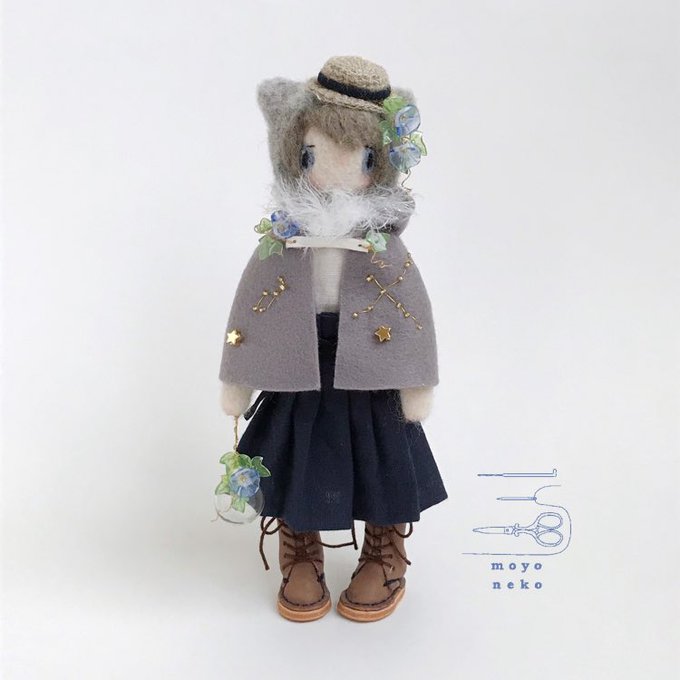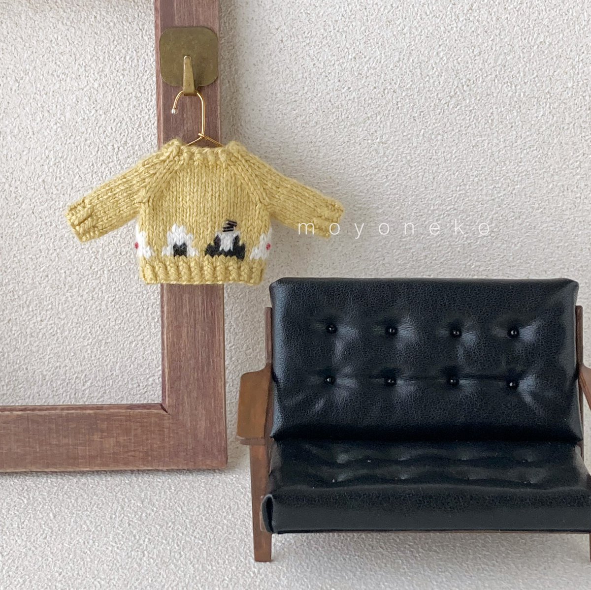 フェルトなどの素材の手足が動かせるお人形、1/12くらいのニット制作してます。 (2枚目のお人形はボディも自作のもの、4枚目写真のお人形はヘッドは自作でボディはオビツ11です) 10月中にminneでちいさなニットの販売を予定しています🧶 minne.com/@moyoneko Thanks! @Lupopo_cafe さま