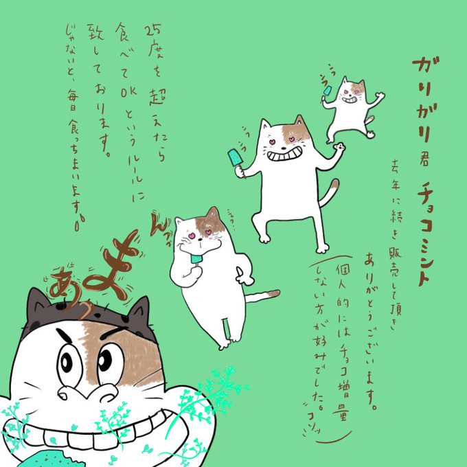 1 2 ガリガリ君のチョコミントだけ好きなんです。あとは甘すぎる。 #ちび猫 #イラスト #落書き #デジタルイラスト #ガリガリ君チョコミント 20/06/15 10:14