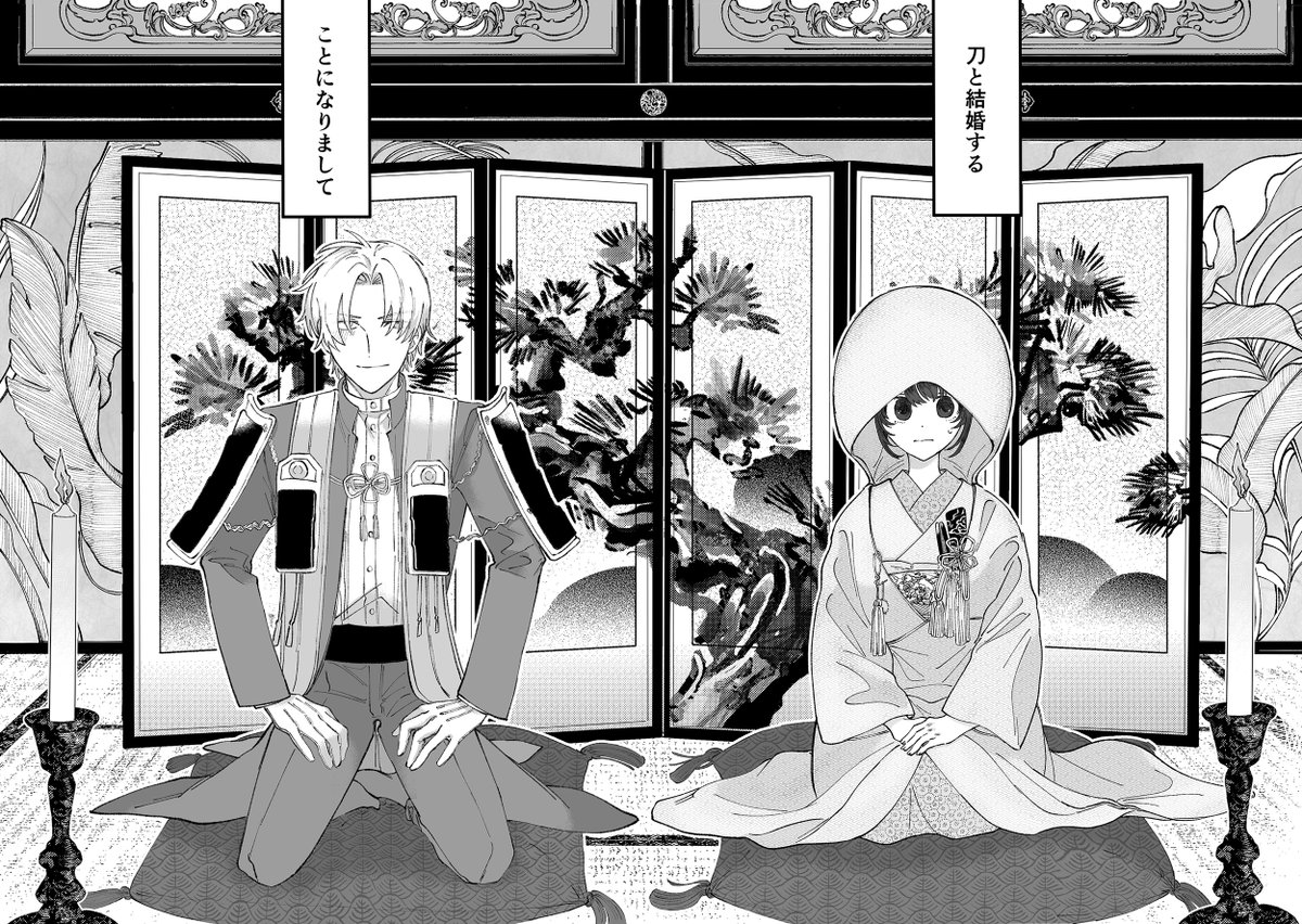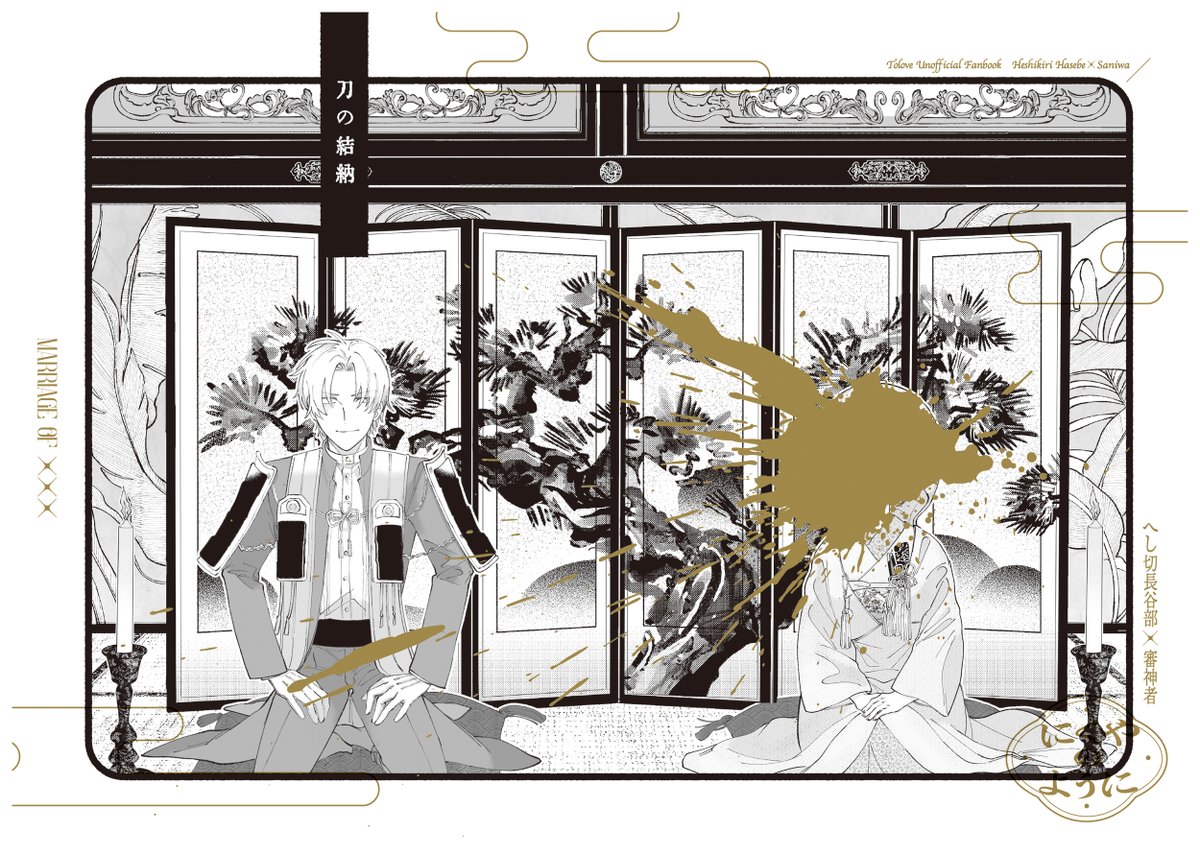 pixivのリンク 表紙 黒と金の二色刷りになります 画像よりもっとギラつくかも 楽しみ〜 (何も知らない売り子にデザイン見てもらったらホラー漫画?って言われた) あとpixivのリンク pixiv.net/artworks/10906…