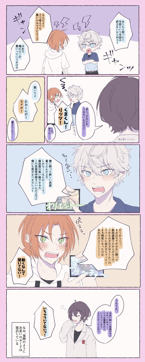 37 177 ワンドロで〜す(時間オーバーしてます、すみません💦) お借りしたお題→相手の服、大喧嘩 大喧嘩というか痴話喧嘩、、、🤔 🐻「はいはい、よかったね〜(棒)」 #いずレオワンドロ @izlo_60min 22/06/04 22:43