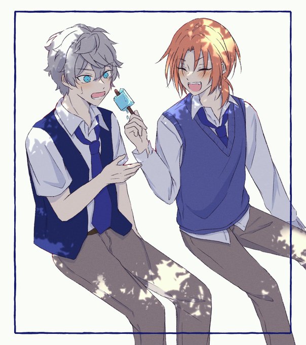 夏!!!の制服!!!!!(2年次) いいから、あ〜ん♪に夢を見すぎている、、、😌 +色塗りで時間オーバー&遅刻すみません💦 #いずレオワンドロ @izlo_60min