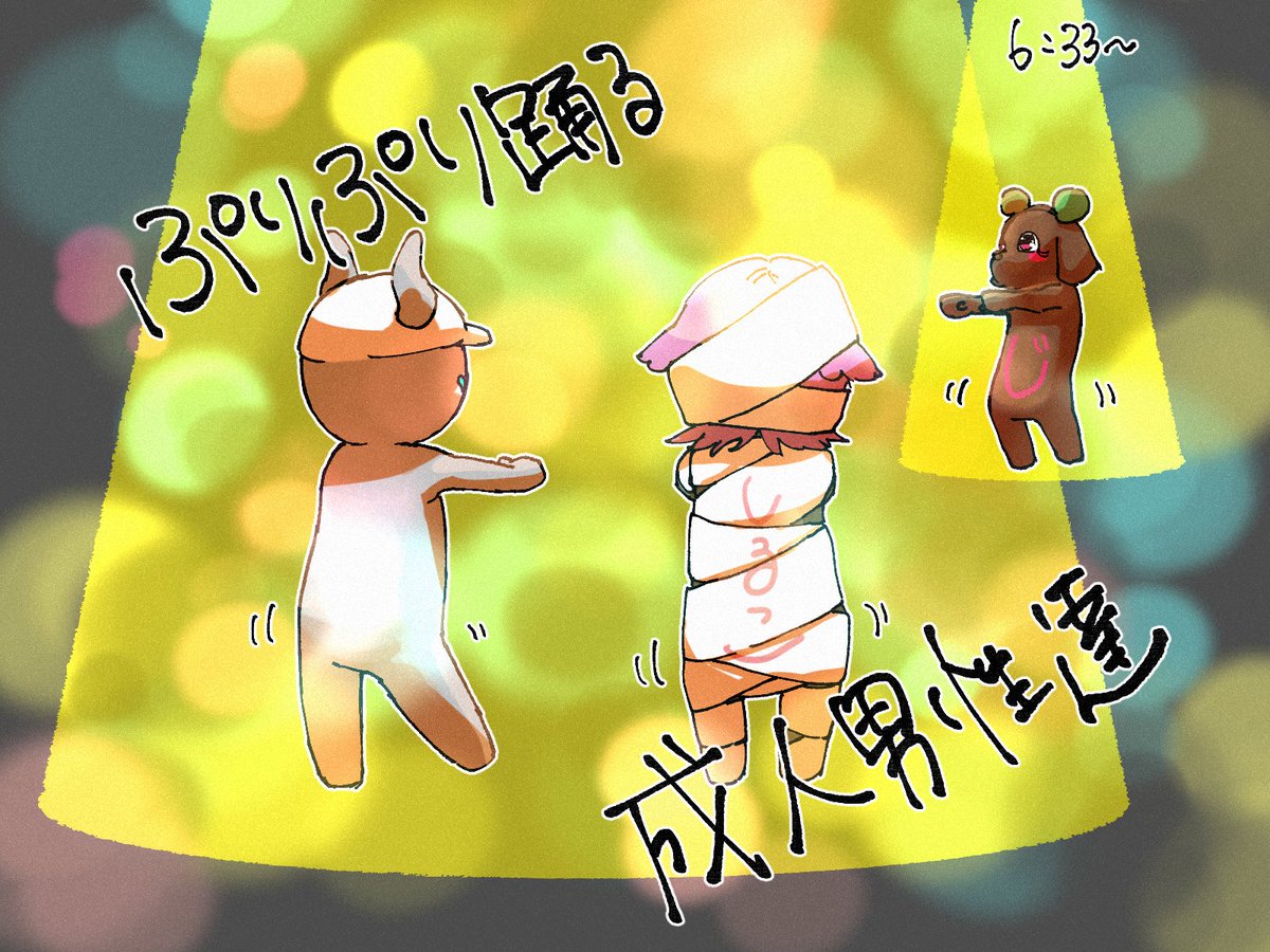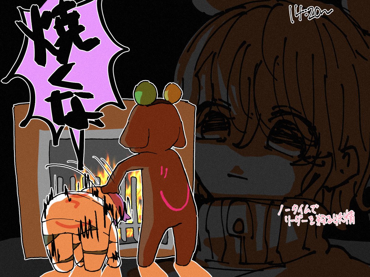 #bintrollFA #MSSPアート #びんとろSP ウルフ側がお題当てる際に、はこたろーさんの言っていたヒントを参考にしようとする🐻ちゃんと、疑うKIKKUNさんです。🐱🐻が📦さんへ揺るぎない信頼を持ち合わせているのが垣間見えました...☺️