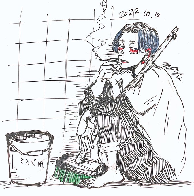1 10 Day18「こすり落とす」 掃除の合間に一服。 #inktober2022 #インクトーバー2022 22/10/20 03:06
