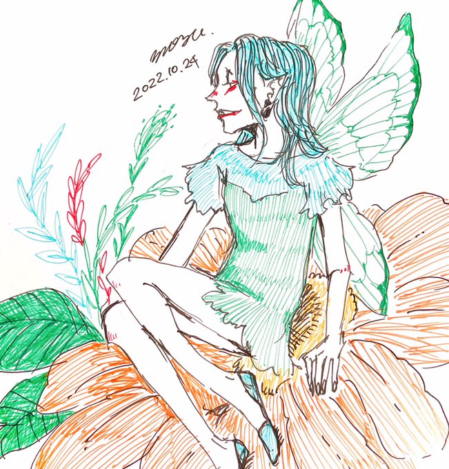 1 6 Day24「フェアリー」 花の上でひと休み🌼 #inktober2022 #インクトーバー2022 22/10/29 16:44