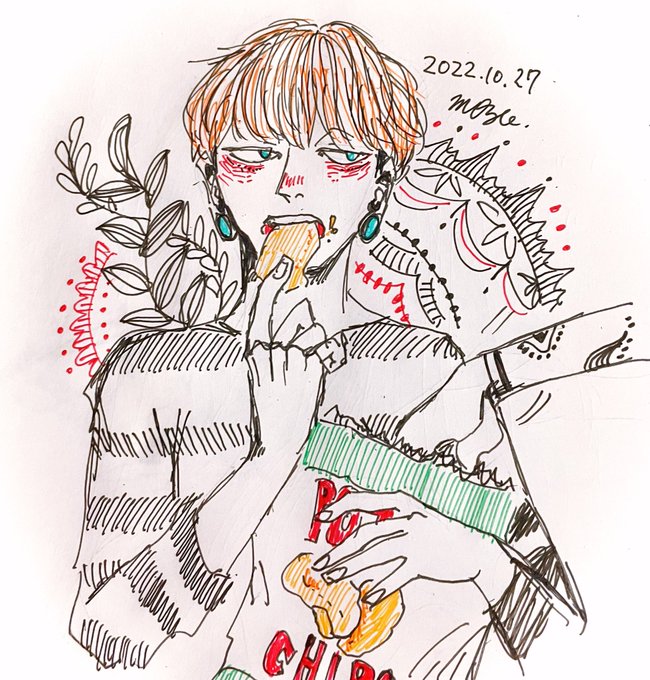 1 10 Day27「スナック」 ポテチはやめられない #インクトーバー2022 #inktober2022 22/10/29 23:13