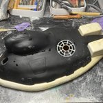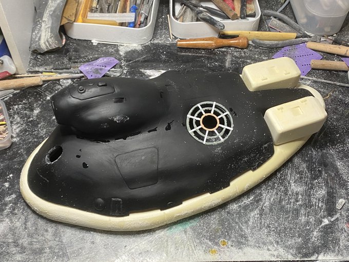 T.H.A.T 堀江さんのでっかいF-BOOT。 ひたすら削って、削って! それでも気になるところがでてきて、まさに修行! このままだとエンドレスで、とてもナゴミーに間に合わないのでこの辺で形状出し終了にします。 #マシーネンクリーガー #kowyokoyama #ナゴミー