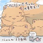 にゃんがさき合同誌ででかにゃたちゃん大量発生!?(らしい) ねこちゃんともふもふいっぱいな神ブック!なんと今週末読めます! サンプル通販など: twitter.com/massigura0329/… (あおかえるのスペースにもちょっとあります)